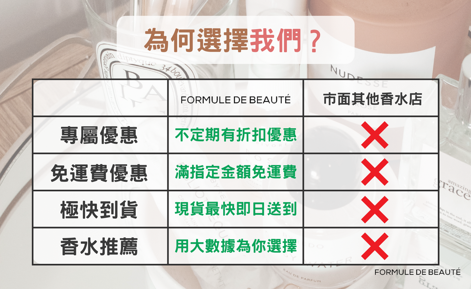 Formule de Beauté 店主為已移居英國多年的香港人,店舖在英、美、法三國成立多年。店主有十多年美妝生意經驗,在全世界,包括英國、法國、美國、西班牙等十多個國家地區都有相熟的美妝代理商,各國亦有相關採購團隊。我們從世界各地格價並進貨,務求客人可以買到既便宜又高質素的產品。